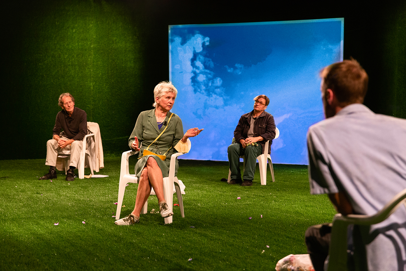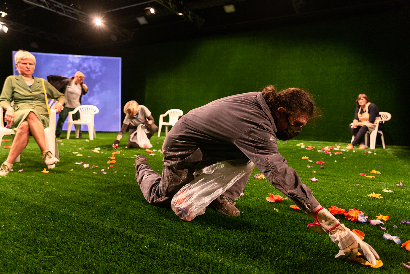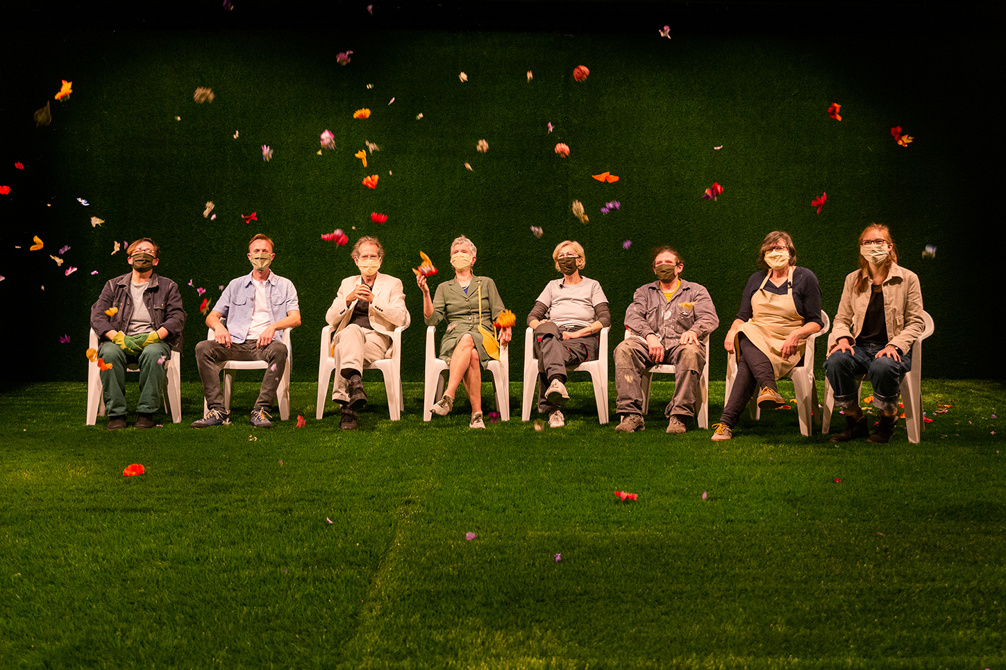 Von und mit: Sigrid Flade, Ulf Haase, Björn Jensen, Miriam Lambertz, Ulla Liedtke, Evelyn Kiok, Hanna Nebgen, Ulrike van der Ven, Rudi Wedekind / Konzept und Text: Dagrun Hintze / Regie: Meera Theunert / Regieassistenz: Nina Reiprich / Dramaturgie: Anja E. Redecker, Nina Reiprich / Bühne: Lukas Fries / Kostüm: Lola Carola Schmid / Bühnen- und Kostümassistenz: Esther von der Decken / Musik und Sounddesign: Martin Baumgartner / Chorleitung: Marc Aisenbrey / Lichtdesign: Sönke C. Herm