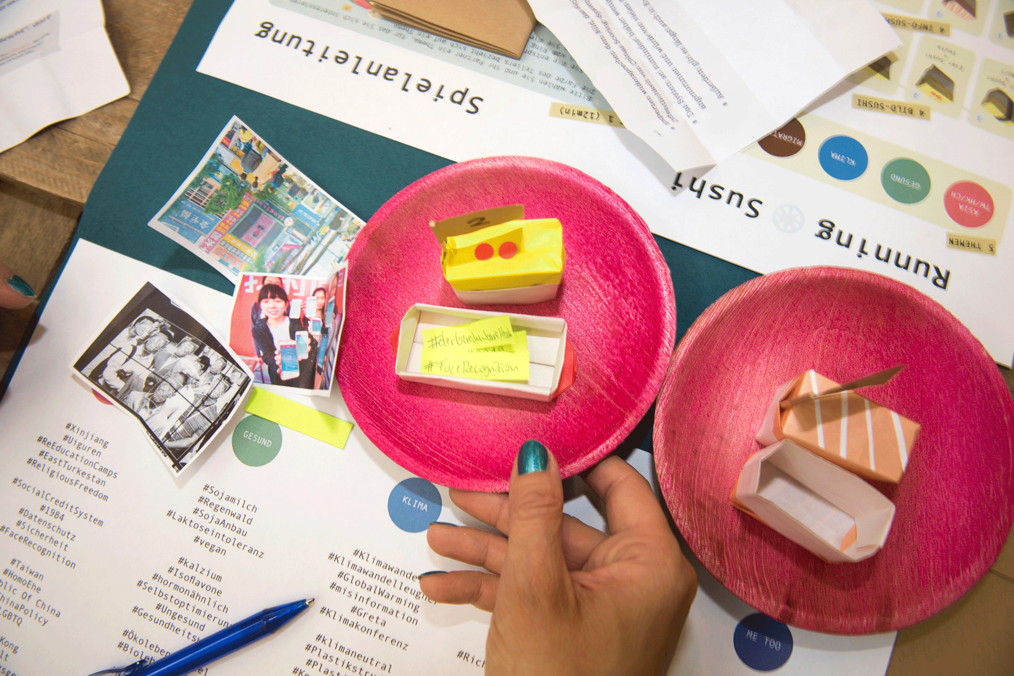 Die Medien konfrontieren uns Tag für Tag mit einer riesigen Menge an Informationen und Nachrichten. Einige davon sind wahr, andere nicht. Was ist wichtig? Wer ist der Absender? Verfolgt er eine bestimmte Absicht? Wie reagieren wir darauf? Yi-Jou Chuang lädt das Publikum ein, Teil einer „Fake News Running Sushi Bar“ zu werden und Nachrichten, Geschichten und Kommentare untereinander zu teilen. Und simuliert so unsere Moves im Internet: Runterladen, lesen, teilen und dann nachschauen, was an uns vorbeiläuft.