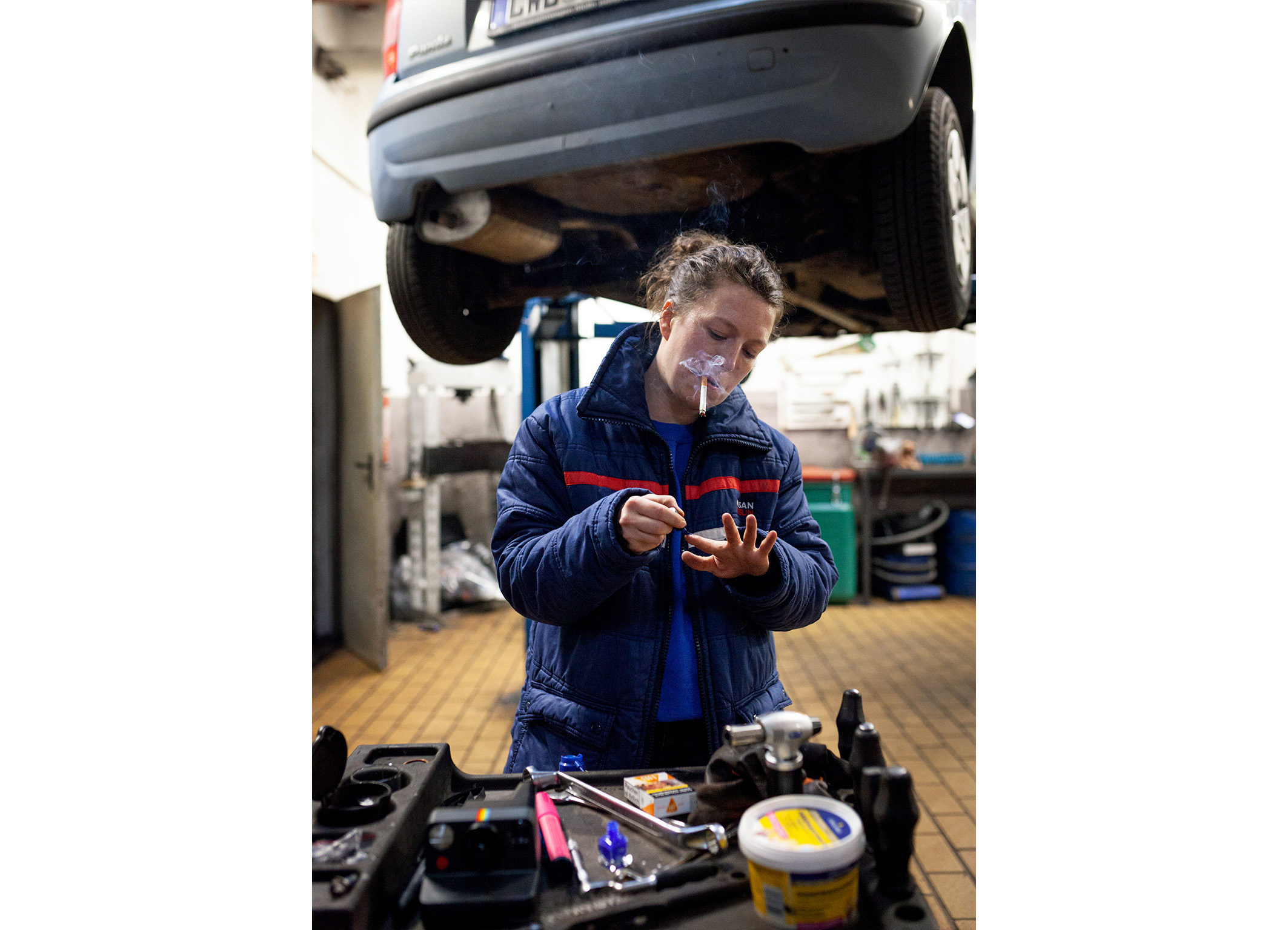 In the solo AUTO-FIKTION: DER STRUGGLE SO REAL, dancer and choreographer Verena Brakonier invites her audience on a journey to her childhood, to a car workshop. She dances and tells about experiences and memories. What is true and what is not remains unclear: an autofiction. Playfully and with critical humor, she shows how origins can affect the body, movements and the way through life. Between lifting platforms, tires and welding equipment, she negotiates classism, discrimination based on socio-economic origin and class position, and its influence – societal and on her personally. She explores a space between different milieus, male-dominated work environments, and so-called „high culture.“ When was the first time you went to the theater? And when to a car repair shop?