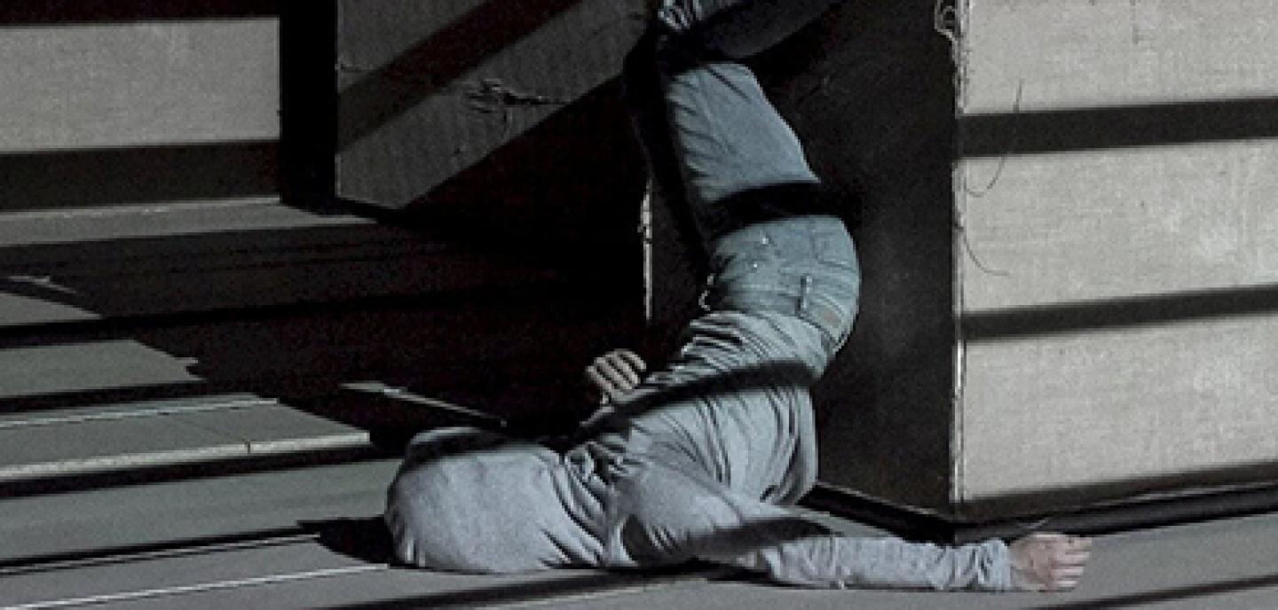 Alles vibriert, die Bühne in ständiger Bewegung: Kuben fahren hin und her – mal langsam und kaum zu sehen, mal schnell und scheinbar alles überrollend. Videoprojektionen verschlucken den Tänzerinnenkörper. Der Körper, der sich hier beständig neuen Gegebenheiten anpassen muss, der sich in einem schwankenden Stück Raum seinen Weg sucht: Jeder Schritt ein neuer Balanceakt, jede Bewegung immer neu gedacht, jeder Weg neu gefunden. Selbst der passive Körper kann auf dieser Bühne nicht ruhen, der bewegte Raum treibt ihn ständig an – bis zur Erschöpfung und darüber hinaus.