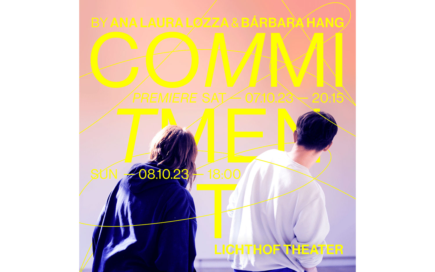 Die Performance Commitment der Choreografinnen Ana Laura Lozza & Bárbara Hang untersucht Zustände von Verpflichtung und Hingabe, um diese als tief verwurzelte, jedoch in sich brüchige Erfahrungen sichtbar zu machen. Indem sie ihre Arbeit an der Materialität von Worten und Klängen verankern, bewegen sich die Choreografinnen auf dem Spielfeld zwischen Vertrautem und Unvertrautem, zwischen gegebenen und neuen Wegen sowie zwischen scheinbar universellen Perspektiven und intimen Blickwinkeln.