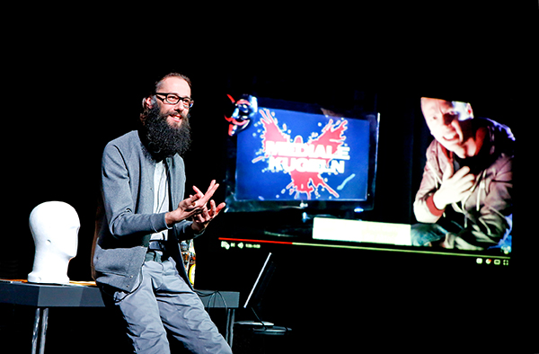 Arne Vogelgesang geht mit „Flammende Köpfe“ auf eine multimediale Zeitreise durch die vergangenen Jahre des politischen Netzes – mit Videos, Bildern und Musikbeispielen. An exemplarischen Figuren radikal rechten Videoaktivismus zeigt er Sprache, Themen und Darstellungsweisen besorgter Bürgerschaft und die Formen von Unterhaltung, die sie hervorgebracht hat. Und mit der Zeit wächst im Hintergrund dieses politischen Theaters ein Chor animierter, agitierter Köpfe, der so schnell nicht wieder verschwinden will.