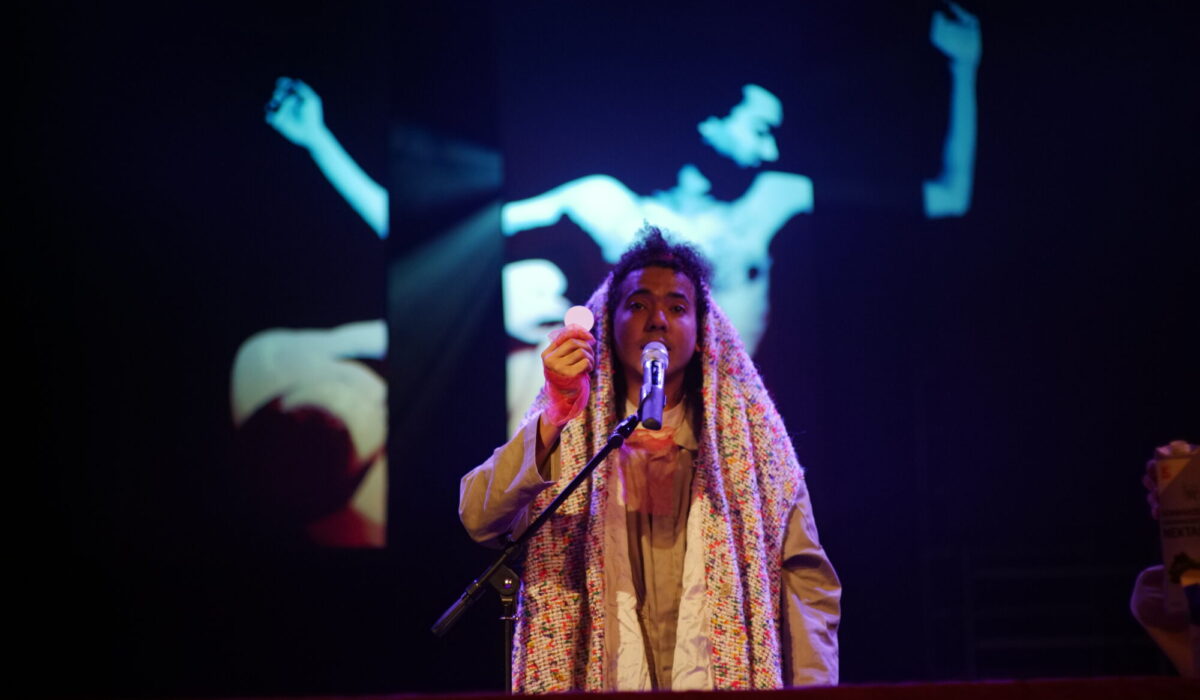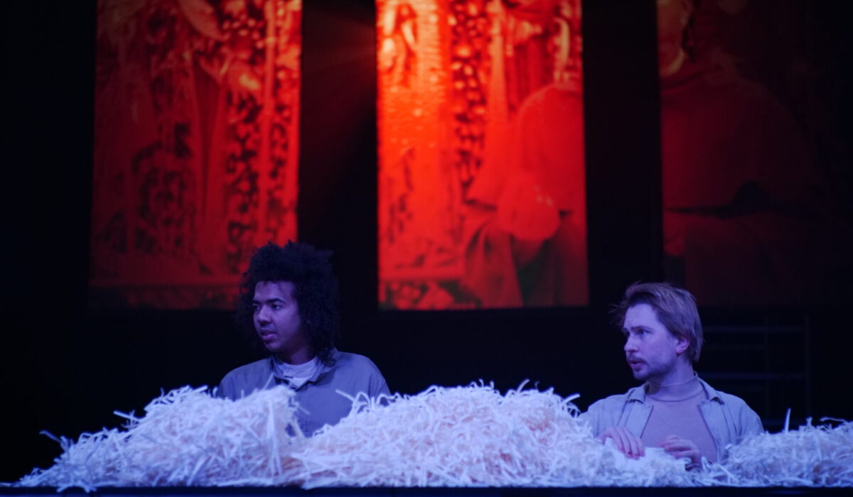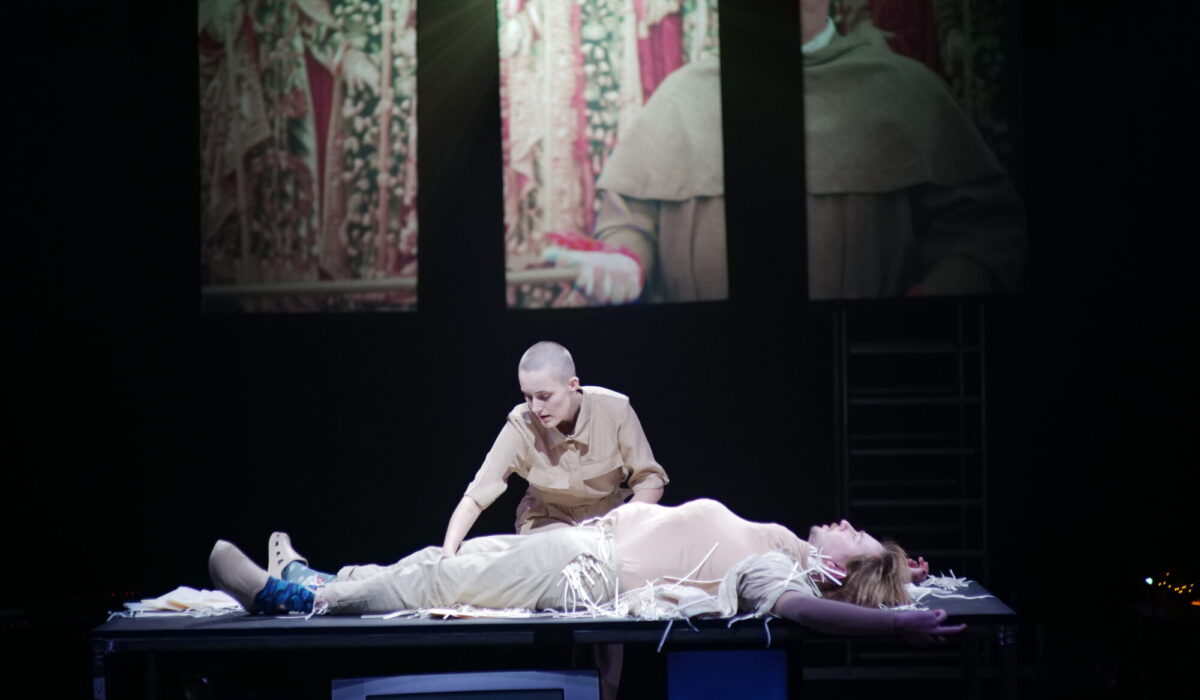 The documentary performance deals with the meaning of the body – the flesh – in today’s society. Three performers navigate through live music, live video and pan-European interviews with protagonists from the porn industry, the church, the food industry, and many more. Fascination meets disgust, theory meets practice, body meets consciousness: Individuals on data carriers, concepts of the unthinkable, perception as the basis of the mind, the vulnerability of the human body, the non-locatability of human thought in a binary logic, the question of the possibility of disembodied existence, the will of the spirit and the desire of the flesh. With the co-presence of the materials, the live performance and the audience, a space is created which enables the simultaneity of the seemingly incommensurable, allows perspectives to collide and searches for ruptures as well as interfaces between concepts.