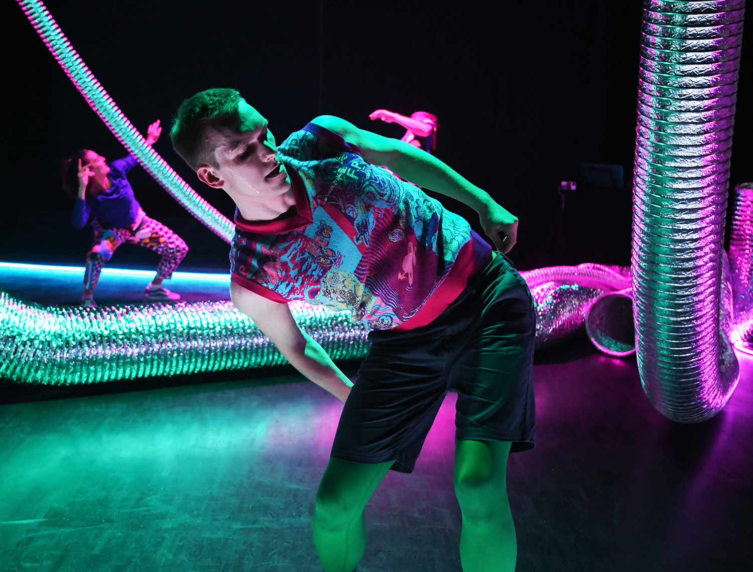 Follow the dopamine reveals characteristics typical of ADHD, such as enthusiasm, creativity and empathy, and investigates how concentration, impulsivity and emotional vulnerability actually feel. The three performers seek a constant togetherness and become a group that skips, dances and intertwines together, repeatedly questioning themselves: What does it mean to be mindful of the needs and skills of the individuals? The trio explores how phases of hyperfocus feel, and yet repeatedly succumbs to chaos, distraction and exhaustion.