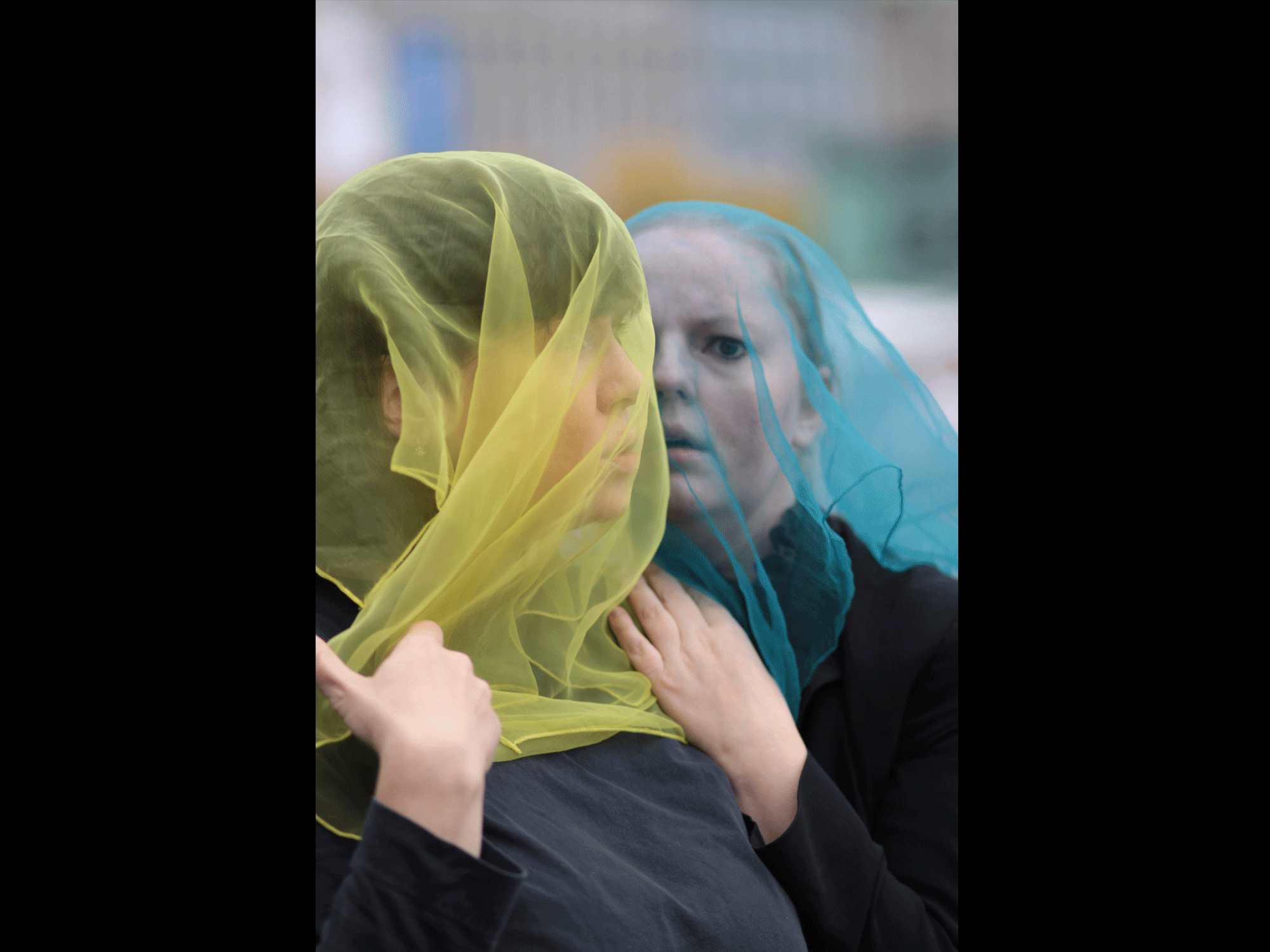 In „Klageritual“, mourning is again brought out of the private space, deprivatised and practised publicly. Within the framework of a participatory, performative installation, a practice of lamentation develops, a ritual that is meant to help us face the new terrible world around us by expressing our collective feelings.