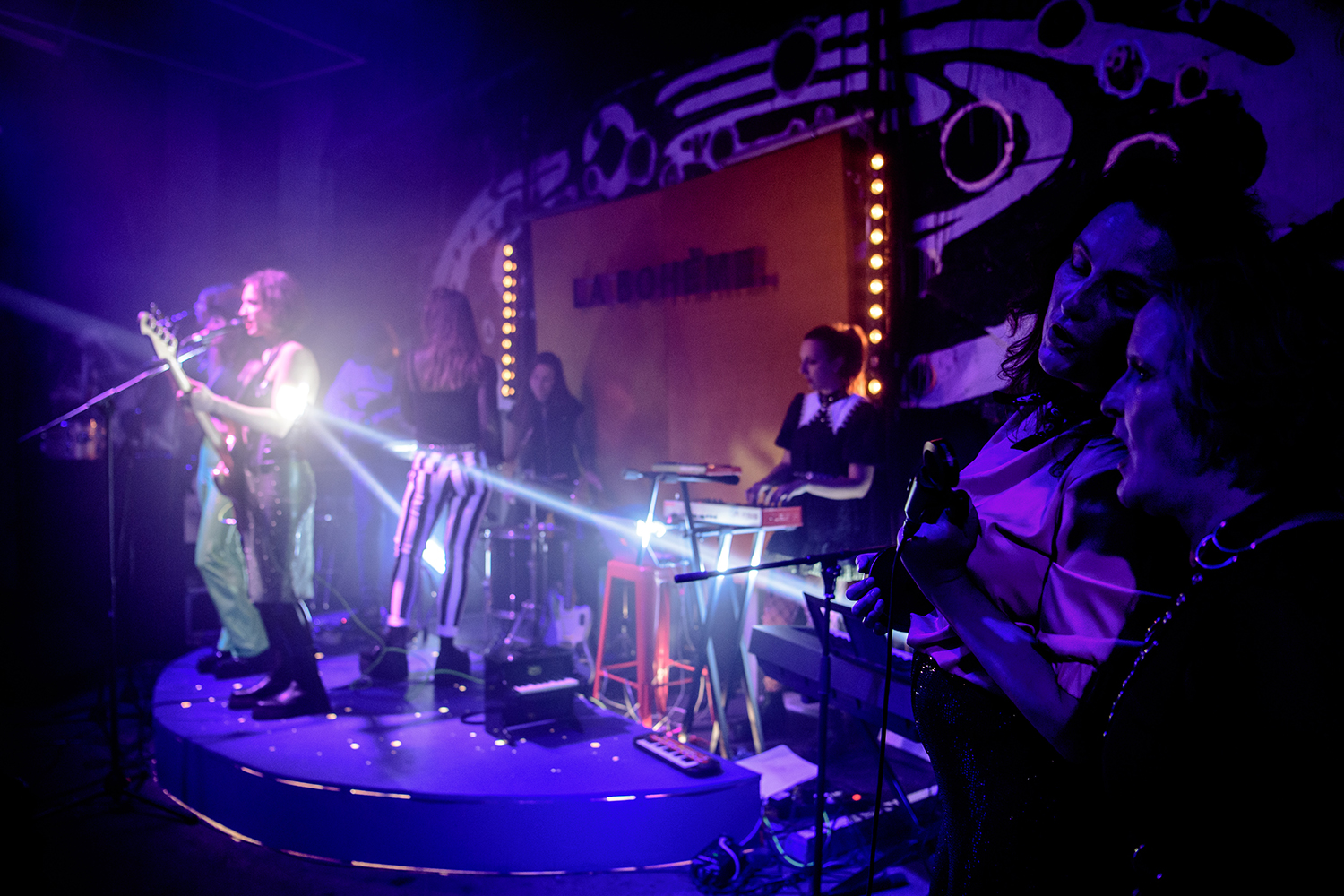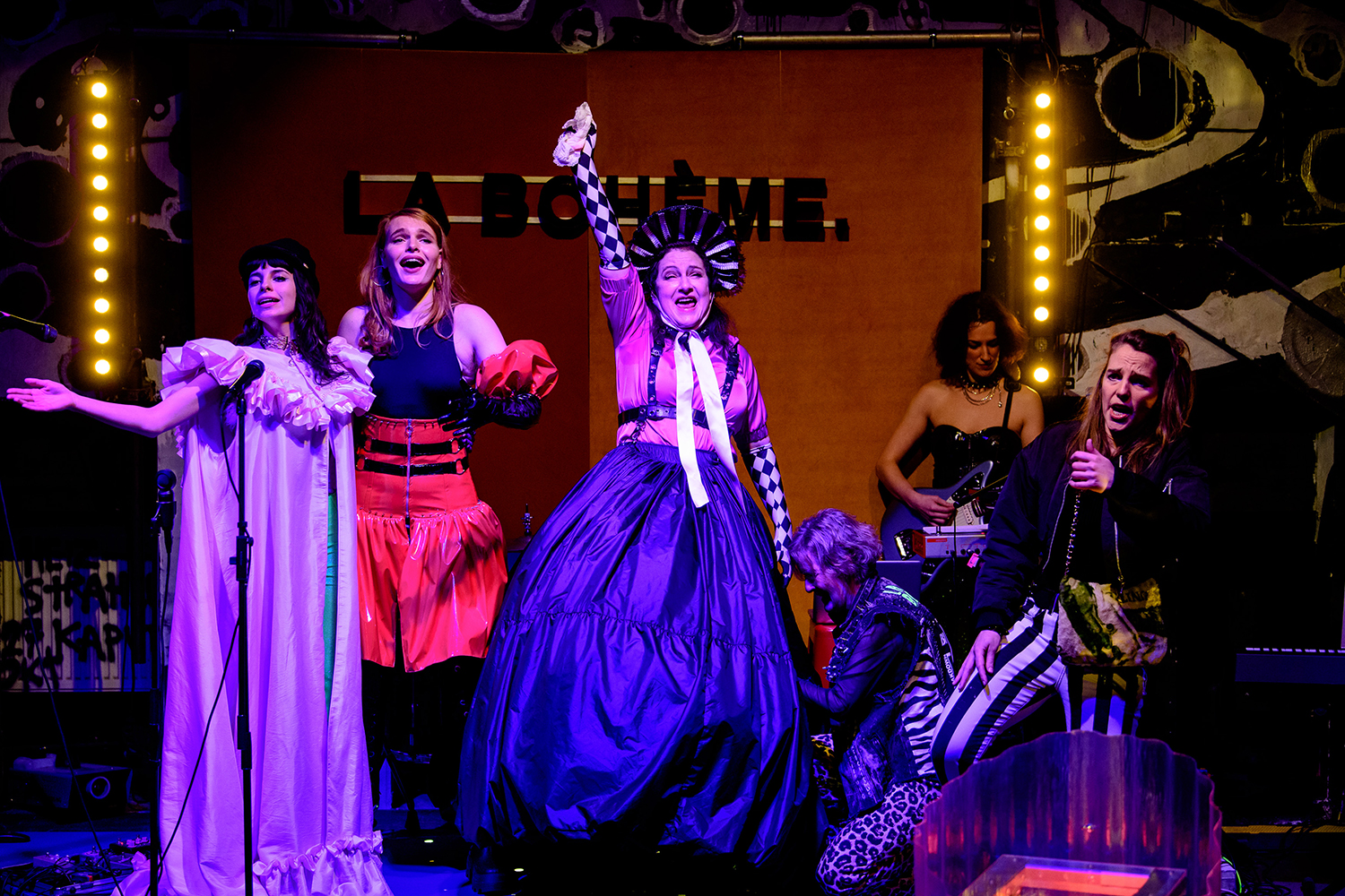 BOOM: Die Musiktheaterkombo glanz&krawall beamt Giacomo Puccinis Oper La Bohème aus dem Paris des 19. ins Berlin des 21. Jahrhunderts. Basierend auf Szenen des Melodrams und vor dem Hintergrund aktueller feministischer Positionen formieren sich prekär lebende Frauen und das Ensemble von glanz&krawall – Bohèmiennes der Gegenwart – zur SUPERGROUP. Wie Gorillaz, Audioslave, Die 3 Tenöre, nur mit 100 % Frauenanteil.