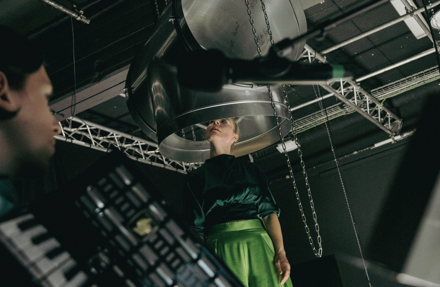 Die Performance findet teilweise auf Deutsch, teilweise auf Englisch statt
