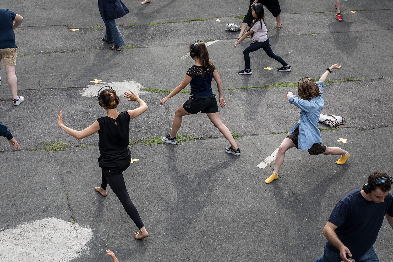 Im Radioballett hört ihr gleichzeitig, aber zerstreut auf dem Platz vor dem LICHTHOF Theater eine Choreographie von vierzehn internationalen Künstler:innnen über Kopfhörer. In ihr werden die Veränderungen durch die Pandemie, ihre Auswirkung auf den öffentlichen Raum und die Körper der Einzelnen reflektiert. In der gleichzeitigen Anwesenheit von weit über den Raum verteilten Körpern, deren Gesten, Bewegungen und Tanz synchronisiert sind, erinnern sie an die abwesenden Körper, die in diesen Räumen nicht erscheinen können.